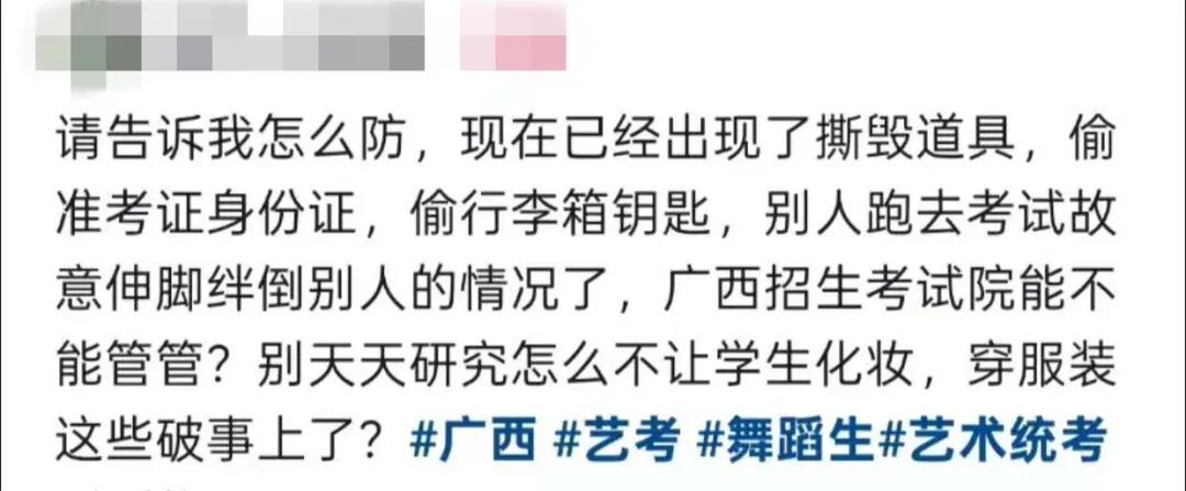 近日,有网友发视频称,近期有学生参加广西艺考惠州股票配资,期间出现道具被撕毁、行李箱钥匙被偷等情况,该网友认为此事为有人故意所为,希望广西招生考试院管理。